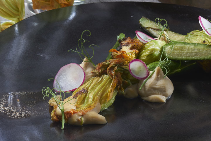 يشق قعر الكيس وندخله داخل ورده الكوسا ونحشوها بالكريم بكمية قليلة حتى لا يخرج الكريم من الوردة يستحسن ربط كل وردة برقة بعرف من البصل الاخضر.